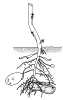 ![]() Longitudinal section through crocus corm in winter. The corm is dormant and using very little energy. © Copyright D G Mackean |